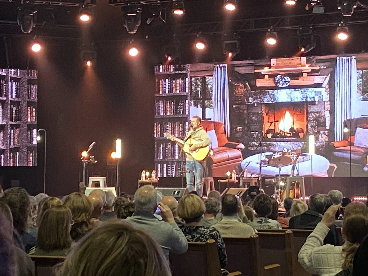However, on Oct 22, 2023, I was no longer a teenager. My wife and 45-year-old self attended a local church doing our best to haul a bunch of youth group teens to a Mac Powell show. Everybody else was already inside. I was late getting to my seat—with two coffees and water bottles in hand. I sat down, a bit dizzy from the commotion and over stimulation that so often fights my traumatic brain injury. I took a deep breath and looked at the stage.