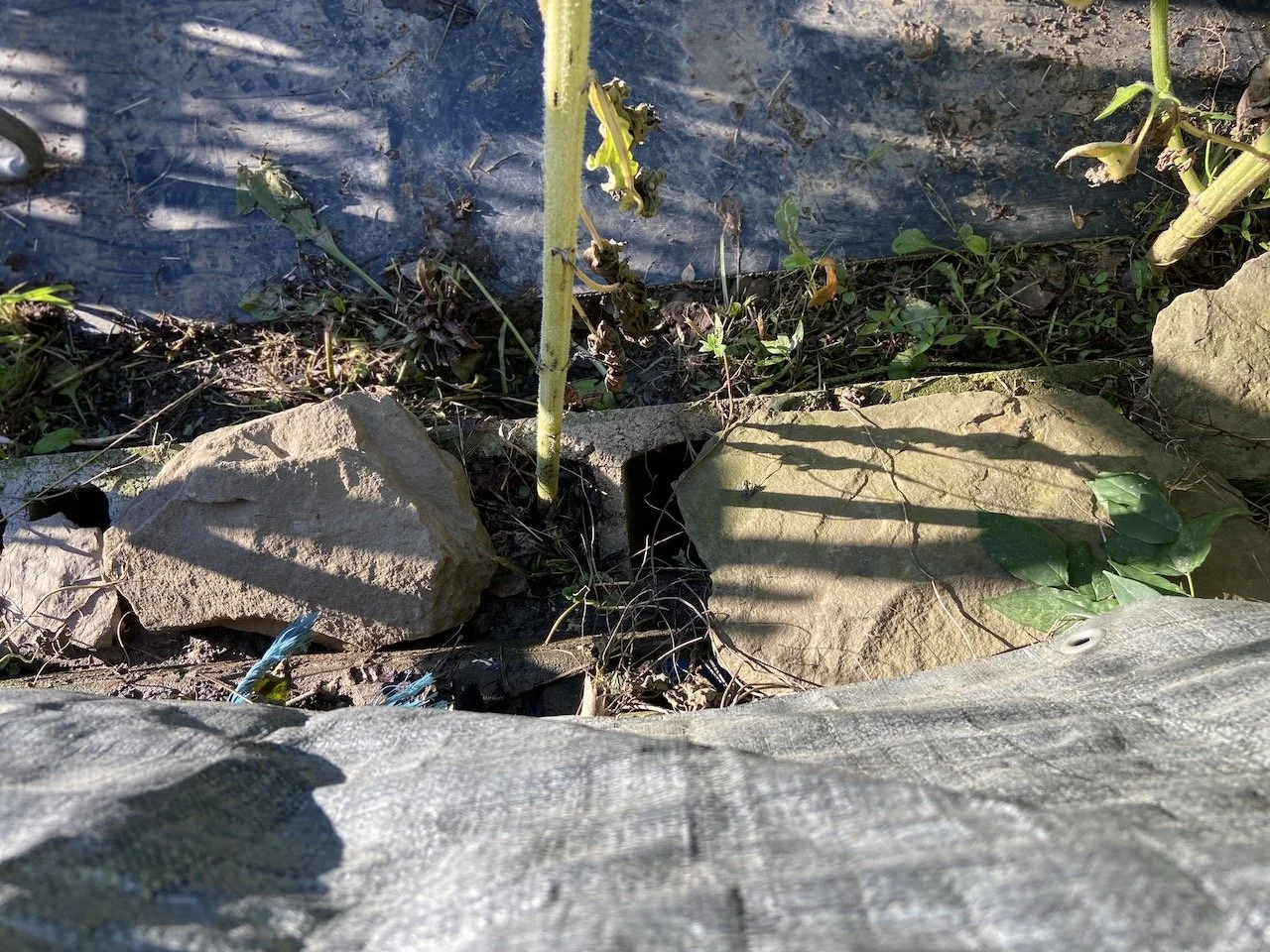 Getting ready for a graduation party is hard work. There is a lot to do and a lot to be done. It was late. Dark. I was outside wondering what else needed attention. And when I spun around, its bloom about knocked me over. What? How? I did a double take, then looked over the railing to see how it could possibly have grown. The sunflower stalk had grown up through the hole of a concrete block. Who would have ever thought?
