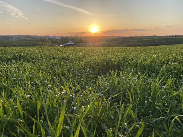 My artist eye took over. I watched the way the sunlight and shadows interacted, dancing in places like the undersides of the growing wheat sheaths. The sky was glowing pink around a bright, yet soothing sun—like it was bathing everything in a peace the day had not known until then. The clouds turned purple. Everything seemed to hush.