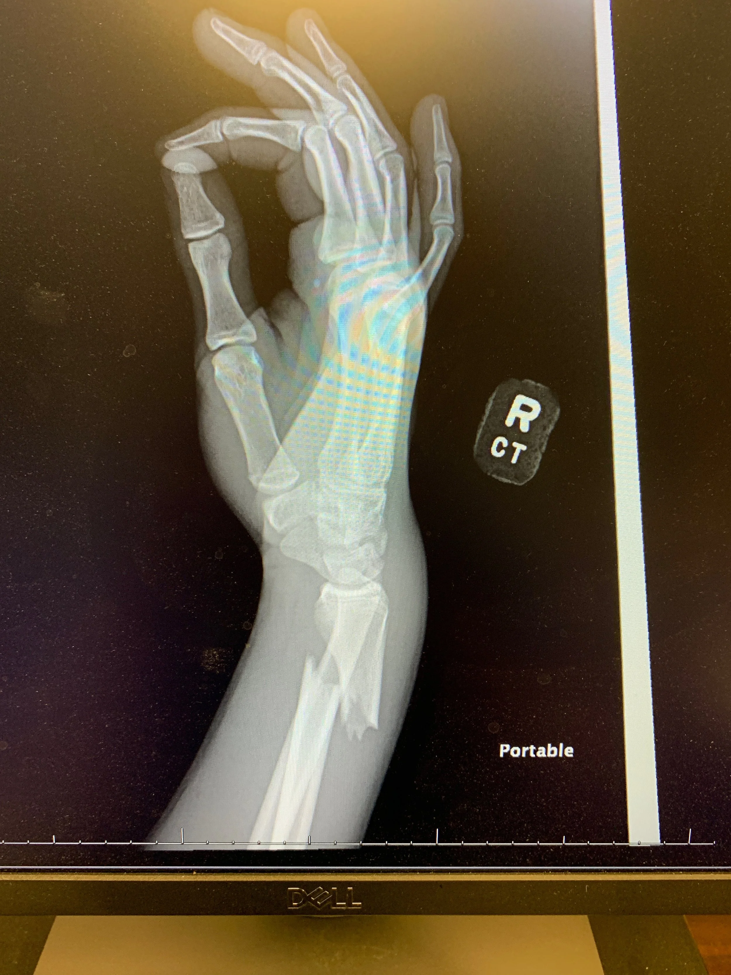 Several weeks ago my son was at the High Point Racetrack at Mount Morris, Pa. He was practicing for the state championship series, and was very happy with the pace he was setting as the day was starting. Already wrapping up the 250cc championship at our local Latrobe Raceway Supercross track, he set his sights on the motocross track the pros ride. All the hopes of a great series came crashing to an end when he did, coming up short on a triple jump. He didn’t even realize the damage that was done and picked the bike right up to continue. Then he noticed his arm wouldn’t “work” anymore. Sometimes pain doesn’t hit right away. Almost breaking through the skin, his radius was broken and his wrist ligaments injured. Looking at him, I could clearly see how badly this break was. There was nothing straight about it.